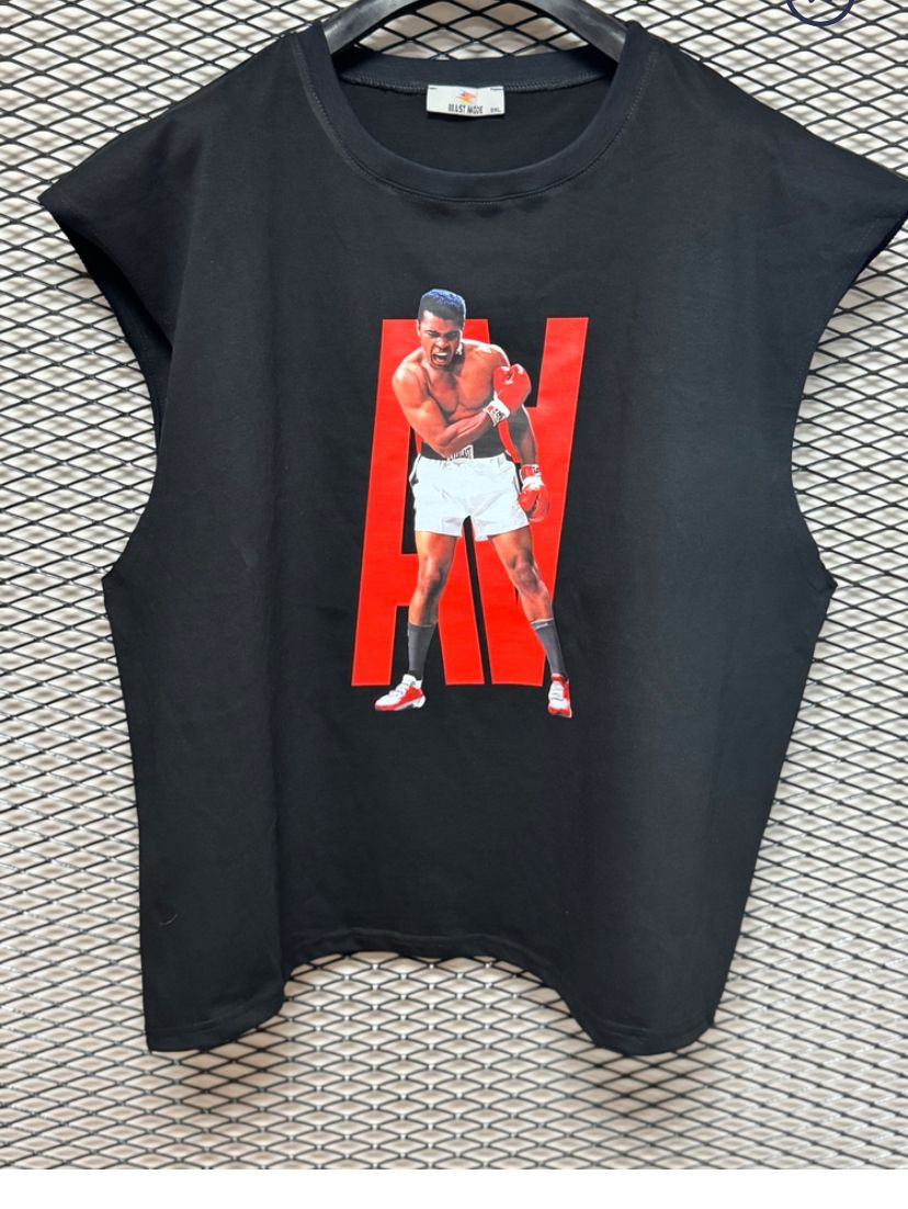 Bisiklet Yaka Baskılı Siyah Kolsuz Tişört Açıklama
