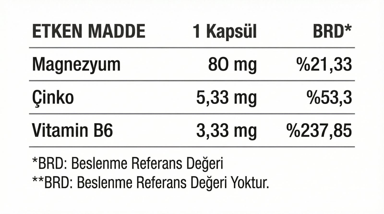 Zma [ Çinko Magnezyum B6 ] İçeriği